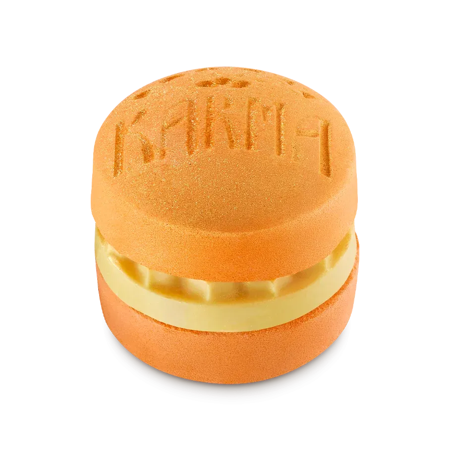Uvnitř se skrývá duální bomba symbolizující dva synchronizované terapeuty procedury Karma, mangové máslo pro hebkost a hydrataci, pačuliová silice pro zklidnění a ukotvení smyslů a silice z brazilských pomerančů pro neodolatelnou vůni.