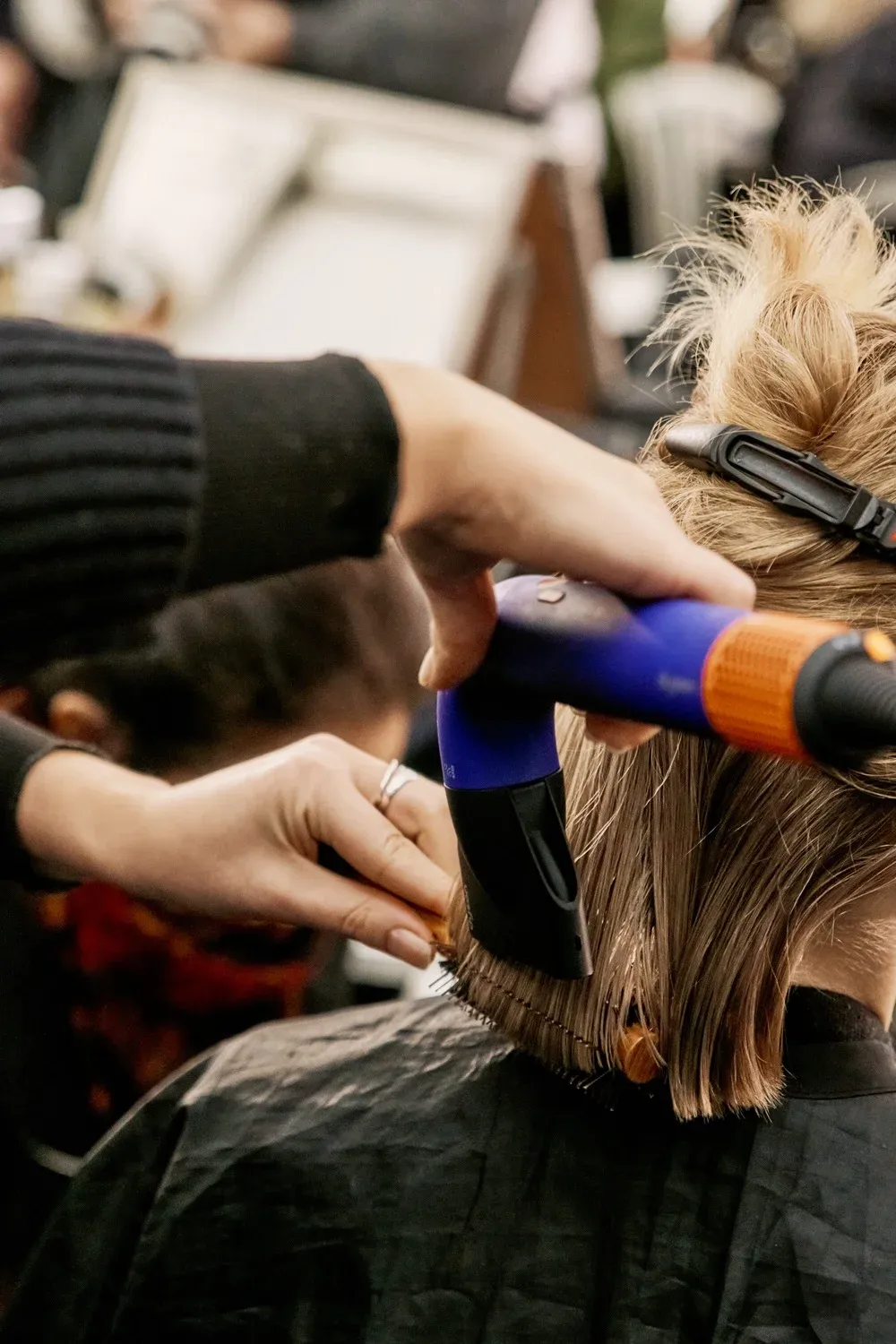 Anthony Turner společně se svým týmem kadeřníků používal při své práci stylingové přístroje Dyson, včetně nového fénu Dyson Supersonic r™ Professional, který jim umožnil připravit modelkám vlasy a vytvořit všechny účesy pro přehlídku. „Tento fén je velmi přesný, což mi dává během tvoření účesu mnohem větší kontrolu. Je to jako prodloužená ruka nebo jako štětec malíře,“ říká Anthony Turner o používání fénu Dyson Supersonic r™ Professional. Díky pěti tryskám vysoušeč usnadnil úpravu vlasů modelek a zároveň pomohl dosáhnout optimálního lesku, o který Anthony Turner usiloval. „Můžeme mnohem snadněji manévrovat kolem určité oblasti a soustředit se na konkrétní místa. Někdy chceme ve vlasech udělat „zářezy“ pomocí fénu a laku na vlasy. Díky fénu toho můžeme snadno dosáhnout. Je to téměř jako štětec. Práce je mnohem plynulejší a dává tvůrčí svobodu. Líbí se mi to,“ dodal kadeřník.