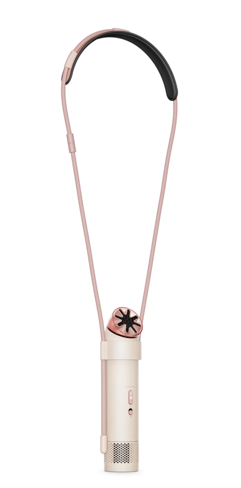 Ventilátor HushJet™ Mini Cool je dodáván připravený pro každodenní použití se šňůrkou na krk (Neck Dock), nabíjecím stojanem, nabíjecím kabelem USB-C a cestovním pouzdrem.
