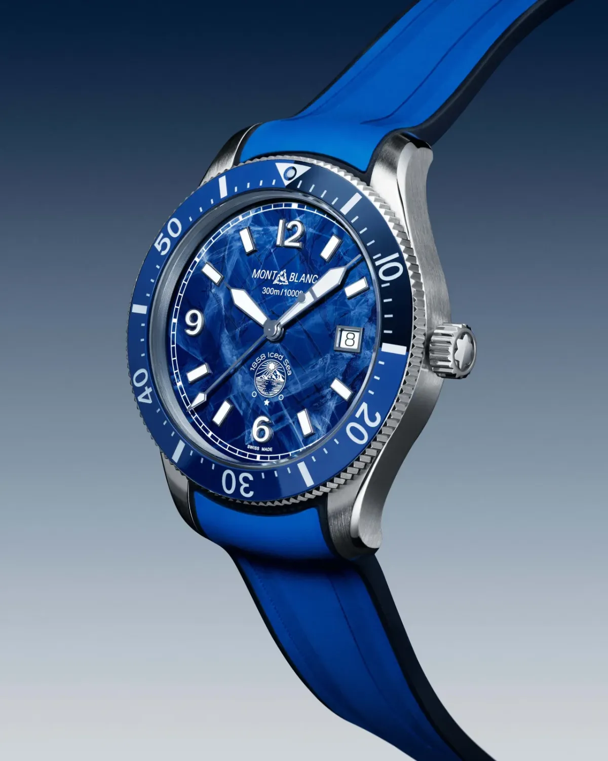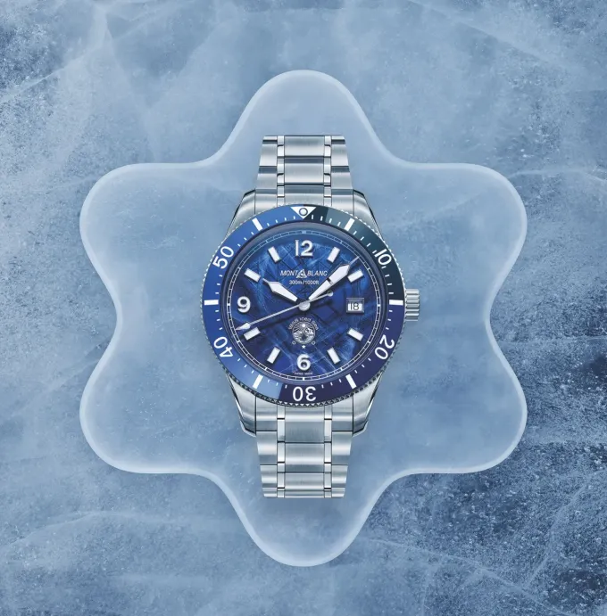 Při vymýšlení nových sportovních hodinek se Montblanc nevydal pro inspiraci do tropických vod, ale vyšplhal se k ledovcovým jezerům masivu Mont Blanc. Pohled na „zamrzlý“ ciferník vůbec prvních certifikovaných potápěčských hodinek značky je jako ponoření se do ledových vod ukrytých pod strukturou ledovcového ledu s jeho vzájemně propojenou sítí krystalů, které zamrzaly po tisíciletí. Při tvorbě ciferníku s iluzí pohledu do hlubin ledovce použili designéři pro získání dokonalé hloubky a jasu jako základ téměř zapomenutou techniku zvanou gratté boisé. Model Montblanc 1858 Iced Sea Automatic Date se dodává v 41mm ocelovém pouzdře s dvoubarevnou keramickou jednosměrnou lunetou a zadní stranou pouzdra s 3D reliéfní rytinou ledovce a potápěče prozkoumávajícího ledové vody pod ním.