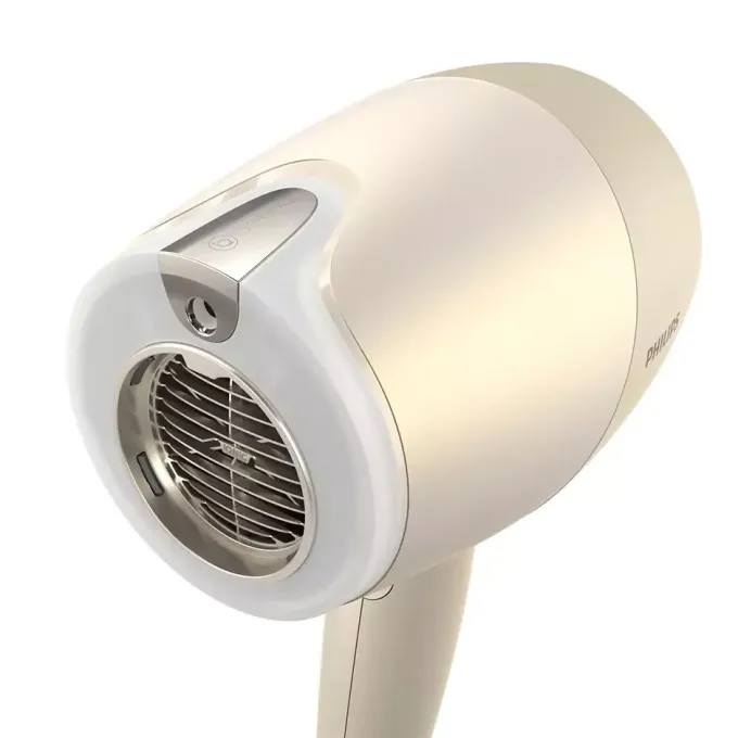 Zatímco jiné fény měří jen teplotu proudícího vzduchu, tenhle fén v novém odstínu champagne snímá během fénování teplotu samotných vlasů a teplotu vysoušení jí přizpůsobuje. Respektuje tak konkrétní typ i aktuální kondici vlasů. Pokud jsou zrovna oslabené, fén Philips Series 9000 SenseIQ to zohlední a vysouší je na nižší teplotu, aby je zbytečně nezatěžoval.