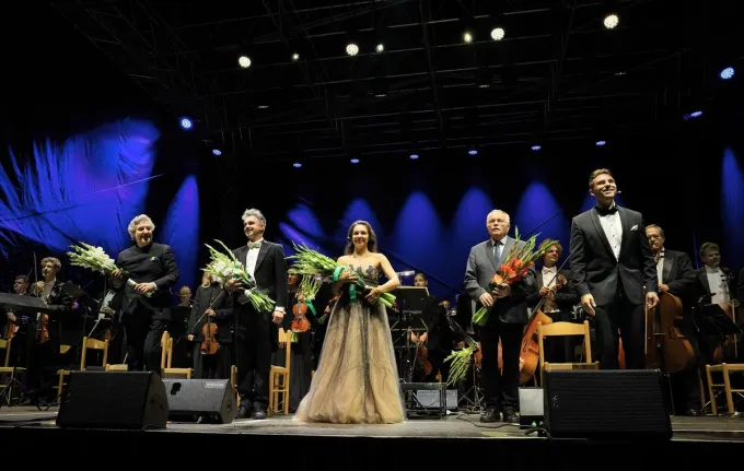 Většina diváků se deštěm nenechala odradit a ten, předpovědi počasí navzdory, nakonec chvíli před začátkem koncertu ustal. Po úvodní árii židů Va Pensiero z opery Giuseppa Verdiho Nabucco se k Českému filharmonickému sboru Brno a Filharmonii Bohuslava Martinů pod vedením Daniela Raiskina přidali sólisté Adriana Kučerová, Anthony Gregory a Boris Prýgl a společně festival zakončili monumentální kantátou Carla Orffa Carmina Burana. Její úvodní a závěrečná sloka O Fortuna – tedy Ó štěstěno se nesla nad početnými diváky v promočené, avšak jako zázrakem již nadále nemoknoucí Pivovarské zahradě, obzvláště vítězně a vděčně.