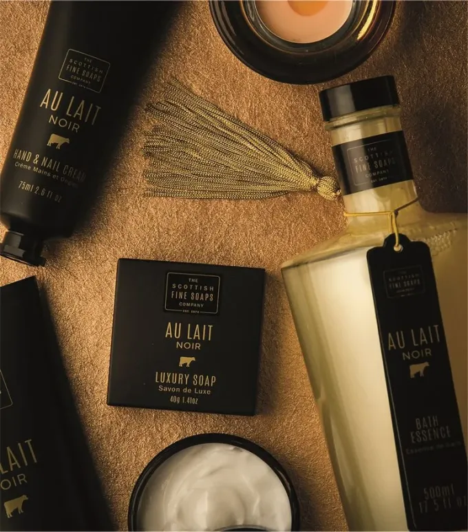 Další značkou je Scottish Fine Soaps. Značka, která se zrodila v drsné skotské přírodě vyrábí produkty, které dopřávají namáhané pokožce tu nejjemnější péči. Obsahuje množství výživných složek a je dokonale čistá, jako sama skotská příroda. Jejich klasickou a velmi oblíbenou řadou je Au Lait. V této čistě bílé řadě naleznete kondicionéry, tělová mléka, krémy na ruce a spoustu dalšího.