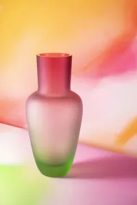 Váza ve své nejčistší podobě. Tak by se daly charakterizovat produkty z kolekce Garden. Každá váza je ručně foukaná do dřevěné formy. V případě Misty Garden se do rozžhaveného skla přidávají barevné rubíny, které umožní jemný barevný přechod. Výsledkem je duhový efekt, který je umocněn „semišovým“ povrchem. Kombinace těchto dvou přístupů přináší novou emoci a úhel pohledu na materiál skla.