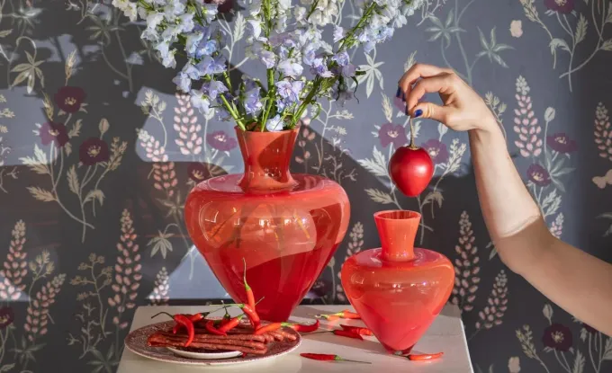 Sklářský designér a výtvarník František Jungvirt působí jako kreativní ředitel KLIMCHI, nadále však tvoří i pod svou vlastní značkou františek jungvirt. Ve své práci využívá tradiční odkazy českého sklářství, kterým dodává nový výraz. S každým dílem se pak snaží posouvat technické a vizuální hranice oboru. Mezi Jungvirtovy charakteristické znaky patří hra s tvary a barvami i jistý minimalismus. To vše splňuje designérovo nejnovější dílo, červeno-zlatá váza Bloom ve tvaru srdce.