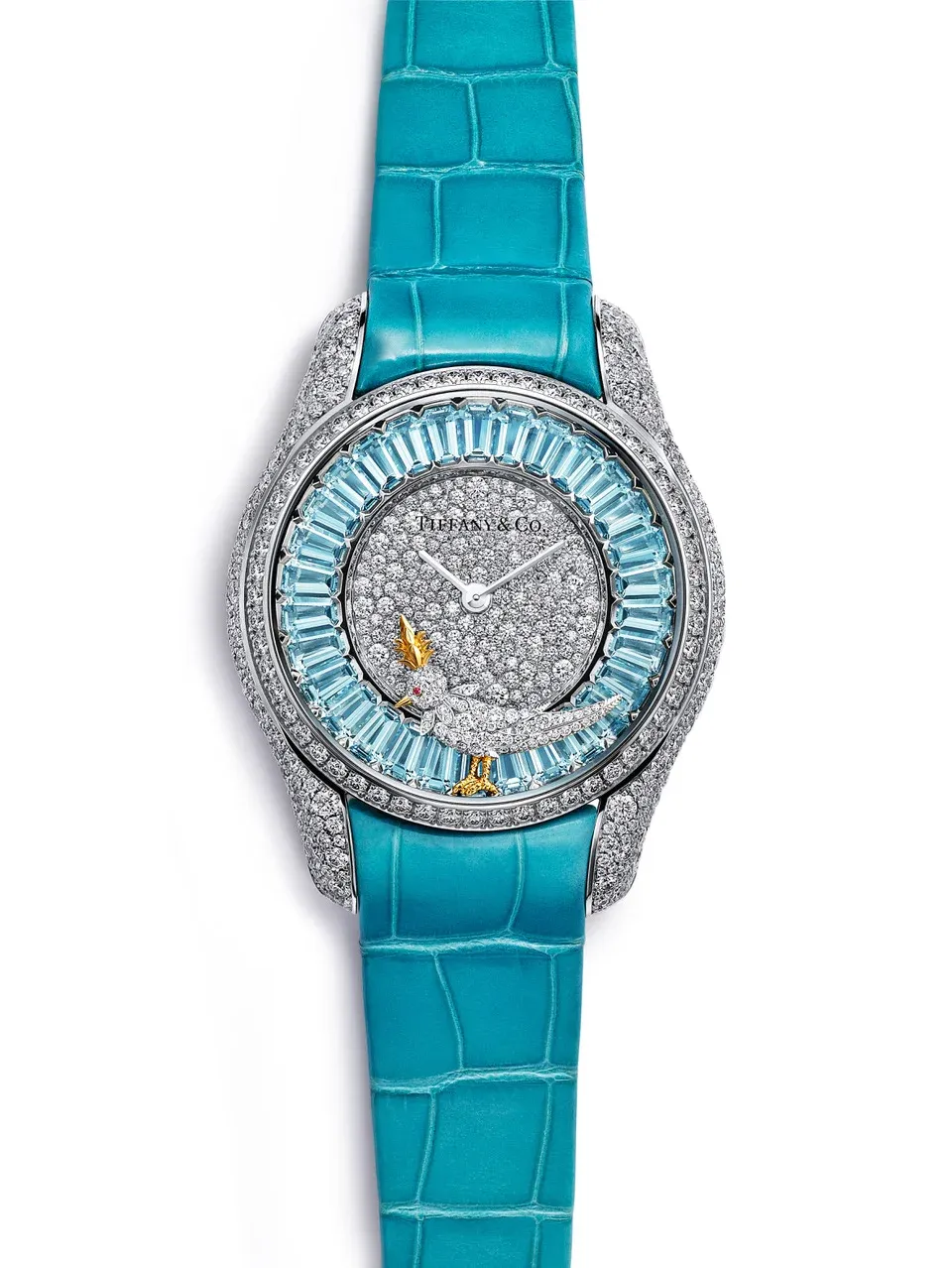 Skvost z kolekce vysokého šperkařství, nové hodinky Bird on A Rock, jsou poctou slavnému návrháři Jeanu Schlumbergerovi, jehož ikonická brož Bird on A Rock z roku 1965 s ptáčkem posázeným diamanty sedícím na velkém drahokamu se stala jedním ze symbolů značky Tiffany. V kolekci hodinek se diamantový ptáček podporovaný rotačním mechanismem ladně otáčí kolem číselníku, jak se nositel pohybuje.