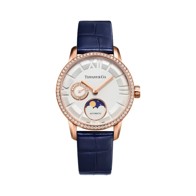 Kolekce hodinek Atlas je inspirovaná čistými, elegantními římskými číslicemi na legendárních hodinách se sochou Atlase, které vítají návštěvníky vlajkového obchodu Tiffany Landmark v New Yorku. Kolekce kombinuje grafickou čistotu s funkční elegancí a představuje modely, které se snadno nosí každý den. Nové hodinky s měsíční fází Atlas® Moonphase mají charakteristický design s římskými číslicemi a novinkou je jejich měsíční fáze, která ukazuje čtyři fáze Měsíce: novoluní, první čtvrť, úplněk a poslední čtvrť. Historie používání komplikací v Tiffany sahá do 19. století.