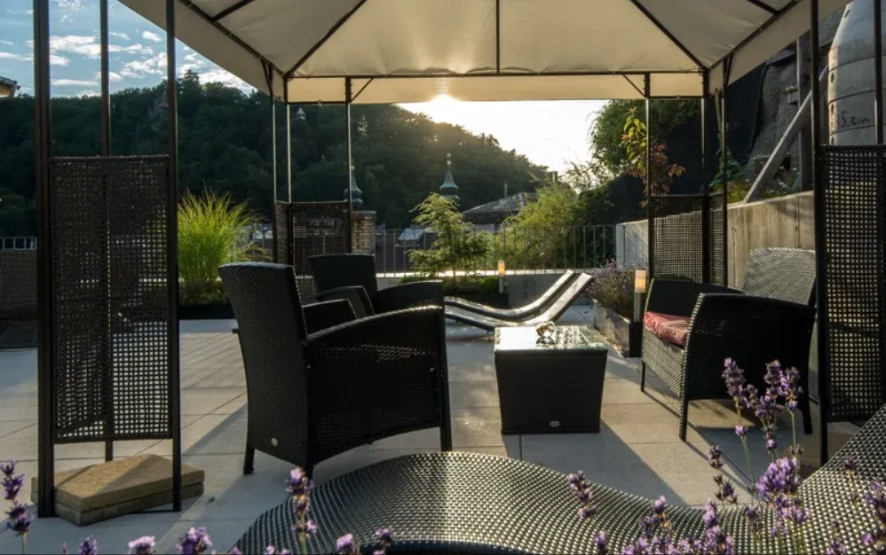 V teplých, slunečných dnech mají hosté skvělou příležitost pro odpočinek a relaxaci na oblíbených Terasách smyslů. Toto krásné, sluncem po celý den zalité místo nás nadchlo na