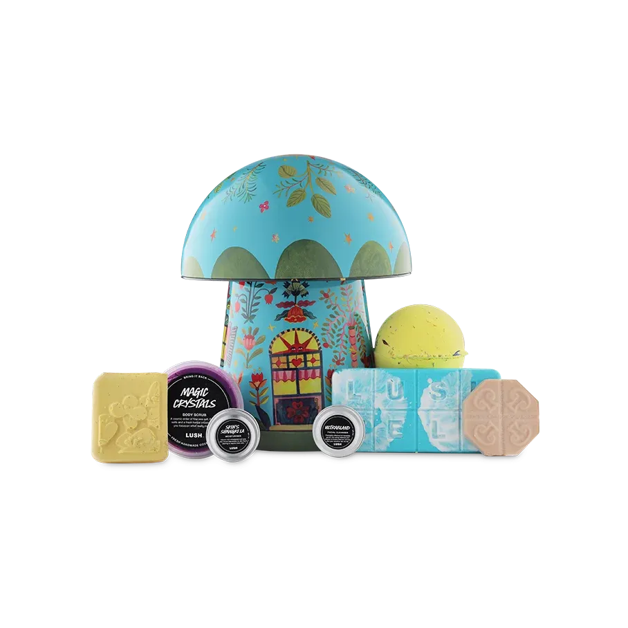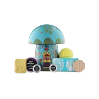 Oživte svou rutinu s touto kolekcí sedmi produktů do sprchy, na tělo a obličej, uložených v kouzelné, hudební, opakovaně použitelném plechovém balení.