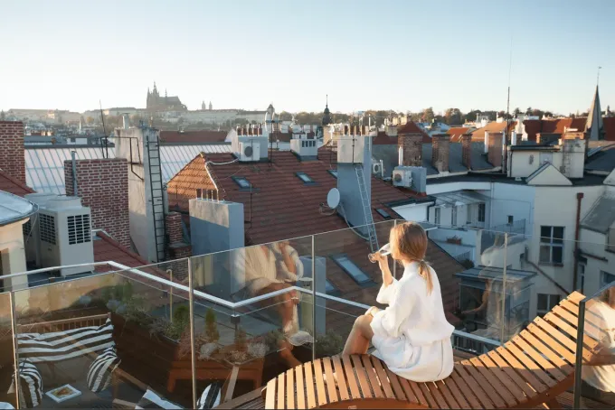 Ranní rituál s čerstvou kávou na terase, kdy člověk vnímá probouzející se město a přitom zůstává v naprostém soukromí svého apartmá, byl přesně tím momentem, kvůli kterému jste se rozhodl v The Emblem strávit svou nezapomenutelnou noc. Čerstvý vzduch a klidná atmosféra dřevěné terasy poskytly dokonalý přechod mezi hlubokým spánkem a dalším programem, který měl svou hlavní část v hotelovém wellness.