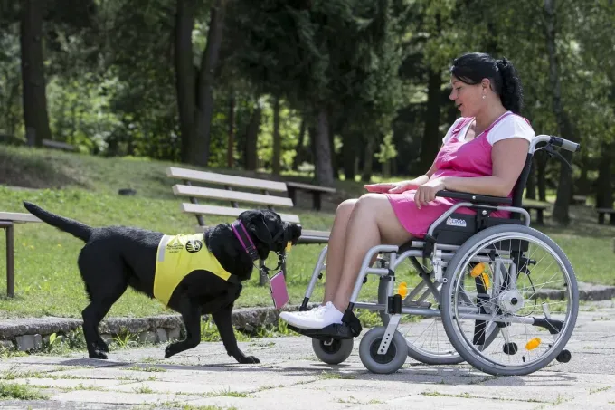 Asistenční psi pomáhají lidem s handicapem během jejich každodenních činností, které lidé na vozíčku nemohou sami bez pomoci zvládnout. Psi, které cvičí Nezisková organizace Pomocné tlapky o.p.s. už 20 let, jim například podají vše, co upadne, otevřou, zavřou dveře, sundají rukavici, ponožky, vyndávají prádlo z pračky nebo třeba hlídají, zda jsou v pořádku a nemají potíže s dechem. Než se ze štěněte stane takový šikovný pomocník, musí projít náročným výcvikem. Po prvním roce tzv. předvýchovy, kdy se učí pohybovat se mezi lidmi a jak se chovat v různých životních situacích, přichází na řadu něco, co by se dalo nazvat jako střední škola pro asistenty. V té se připravují už pro konkrétního člověka.