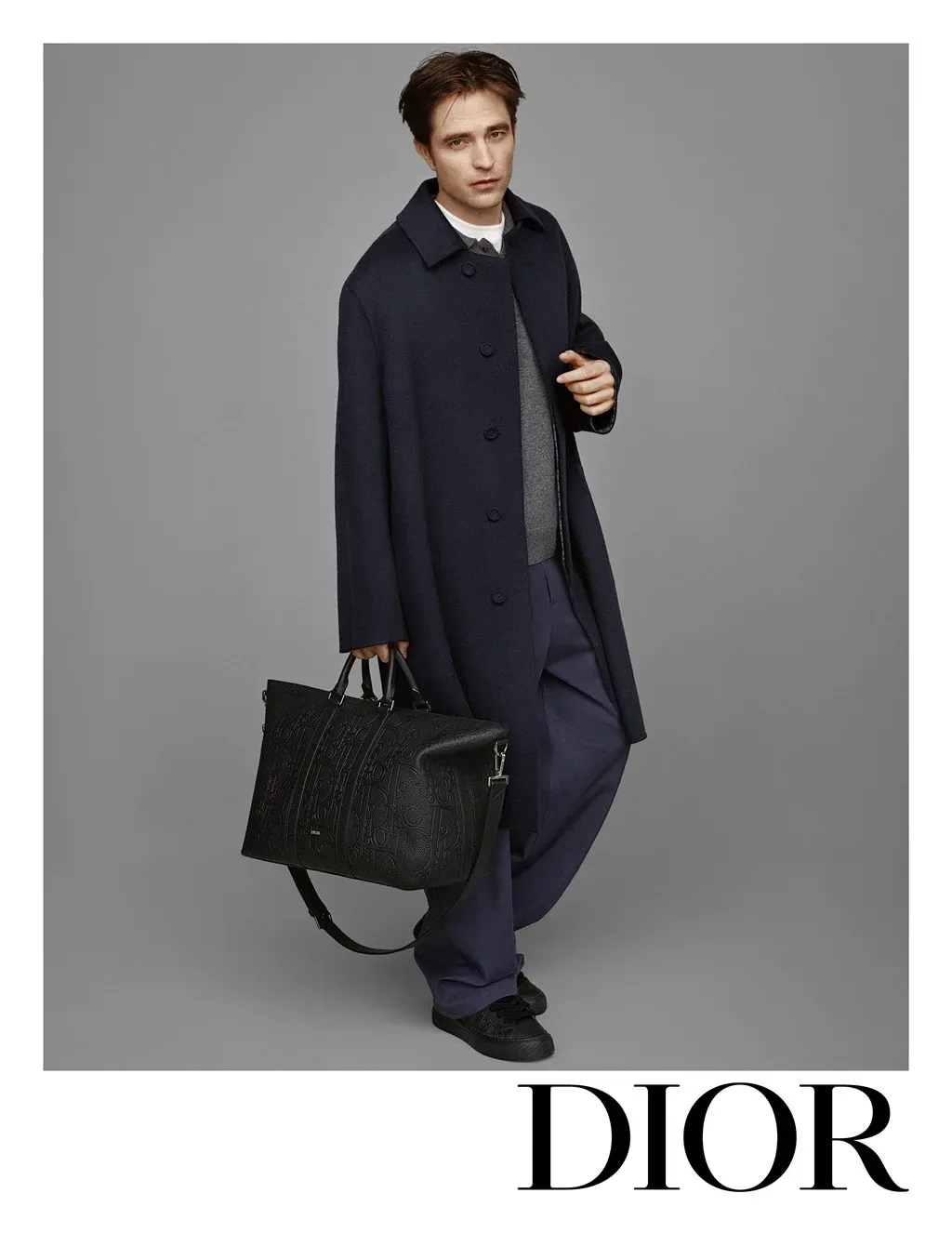 Na pomezí jednoduchosti a sofistikovanosti odhalují fotografie Alasdaira McLellana vytříbenost a jedinečný střih těchto výjimečných modelů. S důrazem na odstíny šedé – oblíbené barvy zakladatele módního domu – má herec na sobě kalhoty s širokými nohavicemi a dlouhé, strukturované kabáty.
