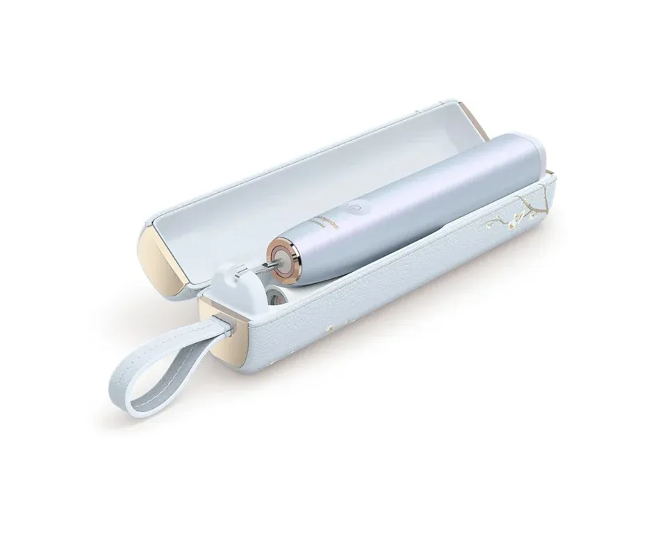 Designově kartáček zaujme hned na první pohled a dotek. Povrch je keramicky matný, příjemný do ruky, odolný proti otiskům a snadno omyvatelný. Tělo kartáčku je pevné, robustní, a přesto neuvěřitelně elegantní ve všech detailech. Každý detail konstrukce působí promyšleně a prakticky, od tvarování, které přirozeně padne do dlaně, až po bezchybné zpracování tlačítek a indikátorů. Vzhled odpovídá vysoké ceně a právem jej lze považovat za prémiový doplněk koupelny i stylového cestovního vybavení.