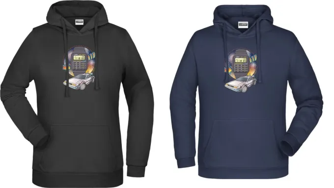 Na tričku, které prodejem podpoří Fond ohrožených dětí a jejich Klokánky, tedy zařízení pro děti vyžadující okamžitou pomoc, se po boku digitálních Casio CA-50 prezentuje také supersport DMC DeLorean, který ve filmu posloužil jako stroj času. Ten ve filmu zhotovil šílený Doktor Brown, zatímco v reálném světě stál za jeho nekompromisním designem s výklopnými gull-wing dveřmi italský návrhář Giorgetto Giugiaro.
