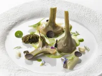 Pokračujeme chodem A Campo Aperto, nádherně vyvážený chod s cuketou, chřestem Bassano, olejem z petržele, crème fraîche, sezónními mandlemi a kaviárem Arenkha. Jemnost ingrediencí je zdůrazněna čerstvými černými lanýži, které tomuto chodu dodávají intenzivní aroma. Každé sousto je zážitkem, který spojuje různé textury a vůně do harmonického celku.