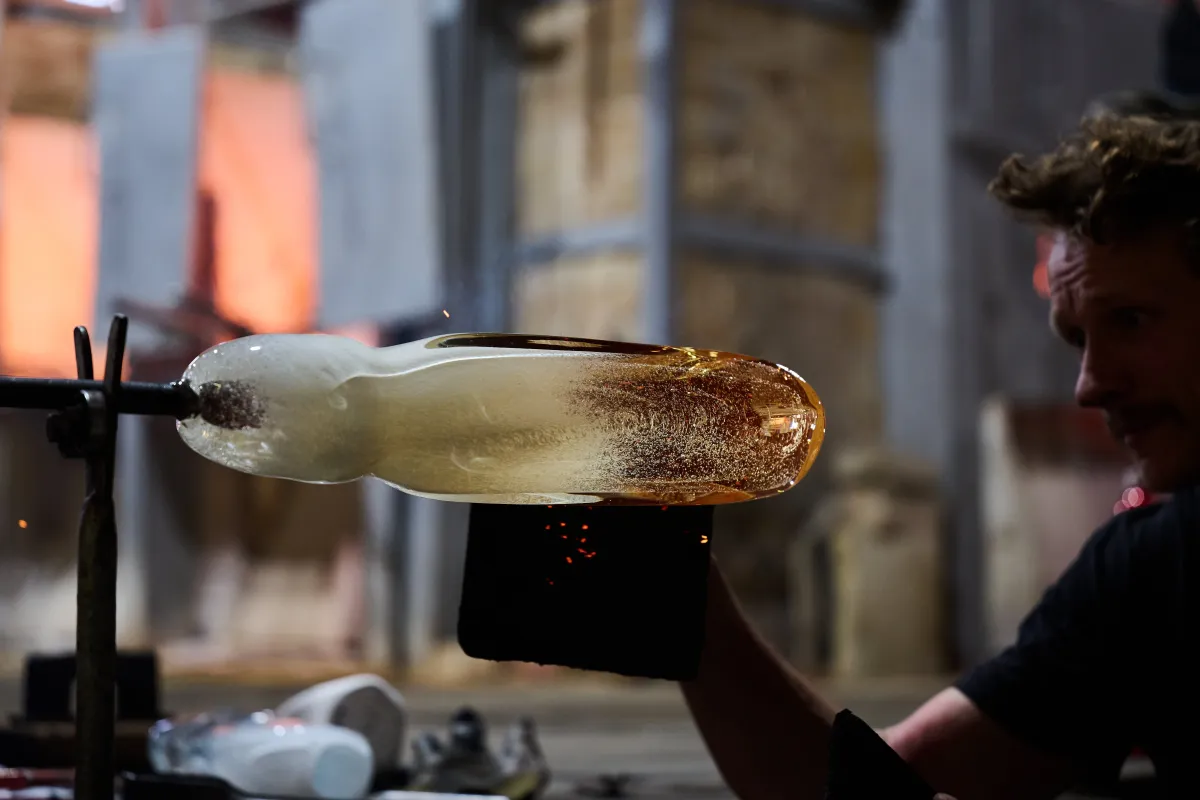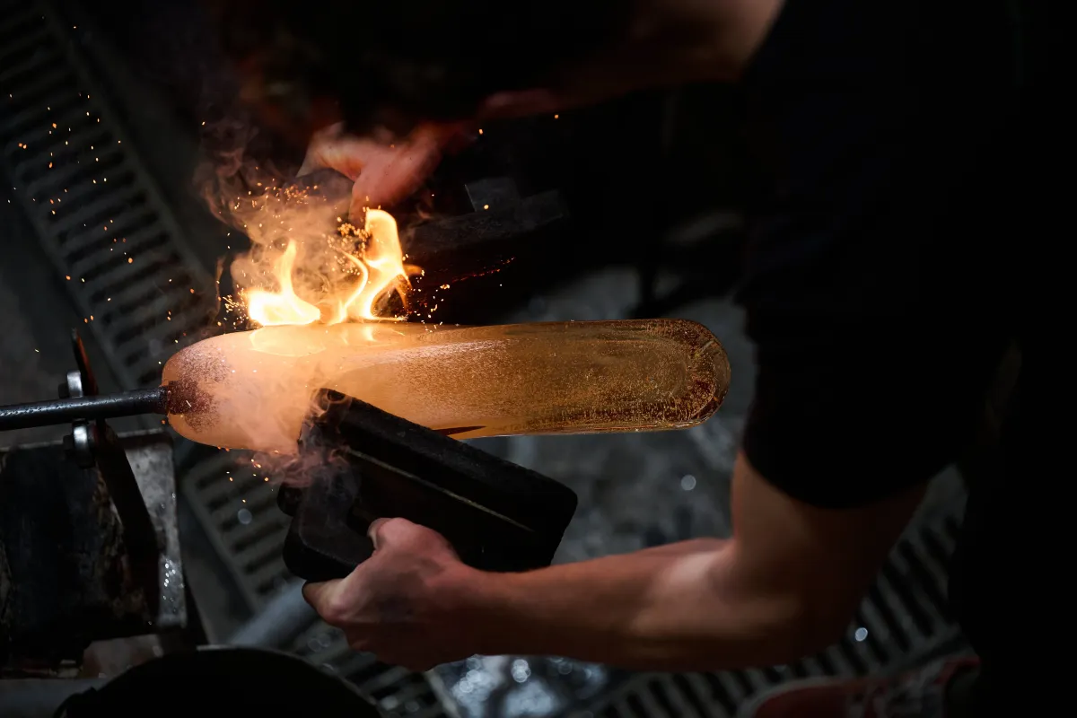 Každá trofej The Glide vzniká ručním foukáním bez použití formy. Sklo je tvarováno přímo v rukách zkušeného skláře, který musí po celou dobu práce udržet rovnováhu mezi stabilitou objektu a jeho charakteristickým zkroucením. Do horké skloviny se přidává soda a opálový prášek, díky nimž vzniká jemný přechod připomínající sníh a led. Následné pískování vytváří strukturovaný povrch, na němž se světlo přirozeně láme a pohybuje.