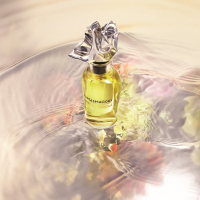 Gehry se na své skulpturální pouti pouští na nové území: do světa flakonů. Jeho práci prokládá touha propojovat skulpturu s lehkostí v promyšlené hře protikladů. Vizionářský architekt proto přetvořil křivky flakonu, zjemnil jeho hrany, zachytil jeho zář a navrhl víčko připomínající fantaskní květ ve větru. Ikonickému „lékárnickému“ flakonu Marca Newsona vdechl tekutý, vířivý pohyb. Přepracované sklo odhaluje jasnou, hebkou a moderní vůni v žlutavém tónu, která při dopadu světla jiskří náznaky zelených odlesků. Flakón korunuje uzávěr imitující třepotající se stříbrné okvětní lístky: esenci vůně v okamžiku, kdy se rozplývá.