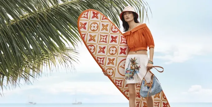 Úžasným letním sběratelským kouskem je surfové prkno Monogram Tiles Surfboard. Je vyrobeno ze strukturovaného laminátu s centrálním dřevěným jádrem v kombinaci s pryskyřicí. Vysoce kvalitní, řemeslně zpracované surfové prkno se pyšní sezónním motivem a signaturou LV boat na spodní straně. Pracuje se svěží korálovou barevnou paletou a posouvá pojetí cestování za hranice pevniny, až do moře. Kompletní kolekce LV By the Pool je pozvánkou do světa cestování, zachycující v sobě touhu po nekonečném létě.