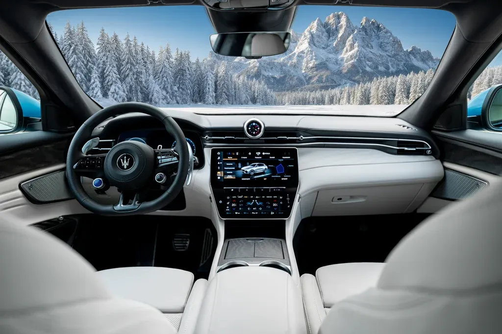Vnější design je dále vylepšen 21palcovými hliníkovými koly CRIO s diamantovým výbrusem a novými výplněmi přední mřížky lakovanými v barvě karoserie. Interiér odráží stejnou alpskou inspiraci díky prémiové kůži Ghiaccio, světlému, elegantnímu odstínu, který umocňuje pocit jasu a čistoty, spolu s exkluzivními povrchovými úpravami a prvky navrženými tak, aby vyjadřovaly myšlenku moderního, esenciálního a hluboce italského luxusu. Konfiguraci doplňuje balíček originálních doplňků Maserati, navržený tak, aby zdůraznil každý detail.