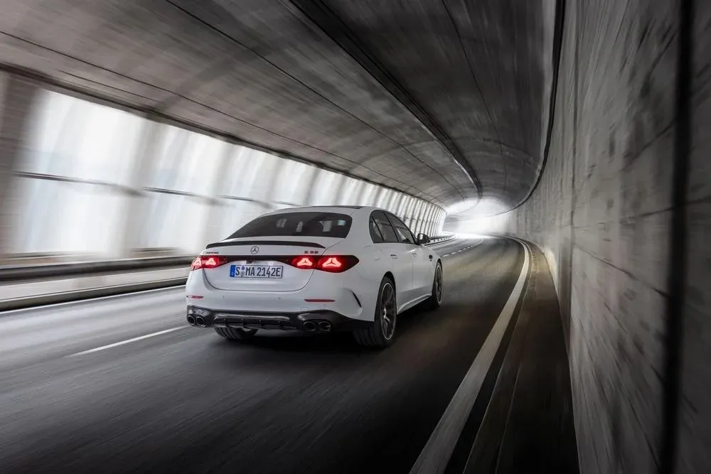 Technický pokrok: Systém spojení 3,0litrového šestiválcového řadového motoru s trvale buzeným synchronním elektromotorem poskytuje ohromující výkon. Celkový systémový výkon dosahuje 430 kW (585 k) a v režimu RACE START dokonce 450 kW (612 k). Maximální systémový točivý moment je 750 Nm, což se projevuje ve skvělé dynamice. Zrychlení z 0 na 100 km/h zvládne tento sedan za pouhých 3,8 sekundy (pokud je aktivována funkce RACE START jako součást volitelné sady AMG DYNAMIC PLUS). Nejvyšší elektronicky omezená rychlost je 280 km/h (u sedanu s volitelnou sadou AMG Driver). A pokud se spoléháte pouze na elektřinu, dosáhnete rychlosti až 140 km/h.