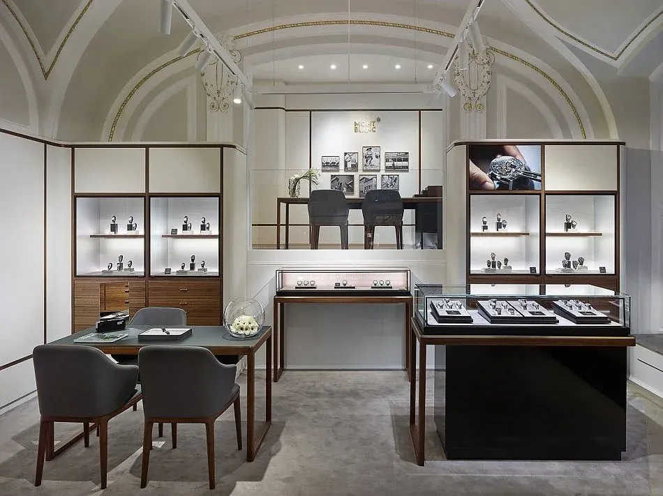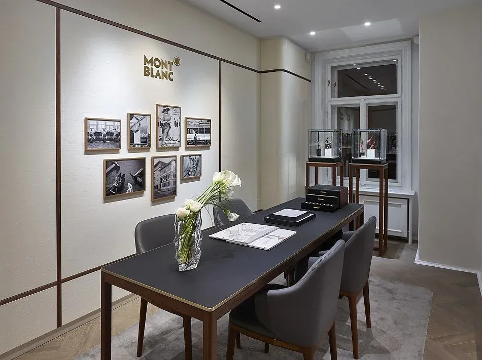 Rozprostírá se na ploše 125 metrů čtverečních a působí vskutku velkoryse. Umocněn vysokými klenutými stropy je vyveden v tzv. NEO konceptu, který byl speciálně vytvořen pro značku Montblanc. Jeho elegantní design, propojující klasický styl s moderními prvky, se vyznačuje příjemnou atmosférou reflektující základní hodnoty značky a identitu Montblanc.