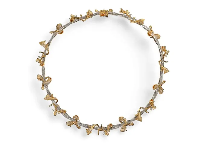 Italská značka Bottega Veneta vstoupila do světa luxusních šperků se svou debutovou kolekcí, která propojuje nadčasový minimalismus s mistrovským řemeslem. Kolekce zahrnuje prsteny, náušnice, náramky a náhrdelníky, vyrobené z eticky získaných materiálů včetně zlata a diamantů. Šperky se vyznačují výraznou strukturou a jsou zpracovány s důrazem na detail, což jim dodává unikátní sofistikovanost.