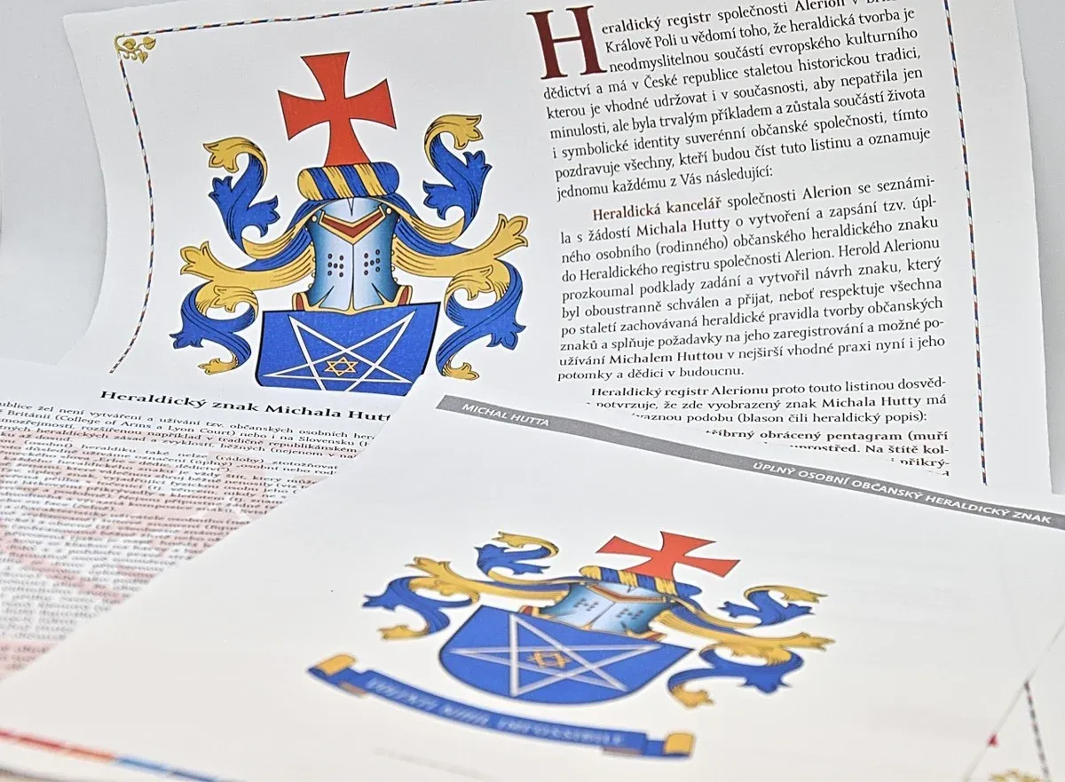 Právě všechny výše zmíněné informace pomohly Alerionu vytvořit pro mě originální znak, kterého si budu vážit do konce života. Miluji modrou barvu, a tak jsem byl nadšen hned, když jsem spatřil, že je můj znak zbarven především do modrobíla. Helma rytíře a jeho štít, na němž je vyobrazena pěticípá hvězda, společně s latinským mottem spolu souzní tak, jak jsem si to vždy představoval. Dokazuje mi to fakt, že Alerion spolupracuje s předními heraldiky v České republice, a tak se drží 100% souladu návrhů s platnými odbornými pravidly i zákony, které se k heraldice váží.