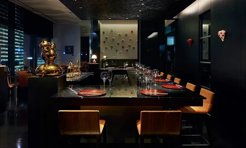 Večeře v Hanasanshou není jen o nasycení, je to emocionální cesta japonskou krajinou a ročními obdobími, která dokonale rezonuje s uměleckým duchem celého hotelu. Když sedíte u stolu, v ruce držíte sklenku prvotřídního ginu a sledujete, jak se světla Tokya pod vámi třpytí podobně jako zlaté lístky na stěnách vašeho pokoje, pochopíte, že Park Hotel Tokyo je místo, kde se moderní design mrakodrapů potkává s hlubokou japonskou spiritualitou a kde se z každé večeře stává nezapomenutelným okamžikem.