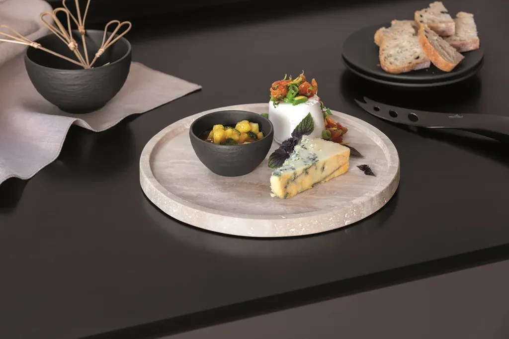 Villeroy & Boch, Servírovací podnos na noze z přírodního kamene Manufacture Travertine, Ø 28 cm