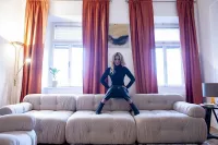 Potřebovala jsem mít zázemí, kde se budu potkávat se svými klienty, do toho se vyrobila vzorová variabilní sedačka, kterou jsem navrhla, mramorové stolky, textilie, které jsou také z mé tvorby, a potřebovala jsem tohle všechno někde mít, abych dokázala ukázat reálně svým zákazníkům, jak vypadá má práce, aby si mohli vše vyzkoušet, osahat. V mezičase jsem začala malovat abstraktní obrazy, malby na zeď namísto tapety, a proto mě napadla myšlenka ukázat v reálném bytě celou moji práci, co všechno jsem schopna nabídnout svým zákazníkům. Potřebovala jsem, aby cítili tu atmosféru! Jedinečný interiér byl vytvořen ze staršího, zrestaurovaného nábytku z bývalého Československa v kombinaci s novými designerskými kousky z mé tvorby. Na základě těchto kombinací byl vytvořen ojedinělý interiér, převážně z udržitelných zdrojů. Další hlavní rolí při vytvoření tohoto interiéru byla abstraktní tvorba. Namísto tapety byla v ložnici použita vlastnoruční originální malba, která je ve stejném designu jako vnitřní strana lustru. V dalších částech showroomu byly použity obrazy, taktéž z vlastní tvorby. Každý detail je důležitý. Nejen samotný nábytek, ale také kombinace materiálů a doplňků. Největší výzvou při tvoření konceptu showroomu bylo využít co nejvíce věcí z pozůstalostí a bazarů a vše sladit tak, aby byl celkový dojem perfektní a v harmonii. Smyslem celé této práce je ukázat lidem, že hezký a útulný interiér je možné udělat i ze starých věcí, a přitom neplýtvat. Tento nestárnoucí trend si jistě zaslouží mnohem více pozornosti než neustále se měnící styly, kterým podléhá většina lidí.