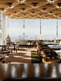 Vnitřní vybavení Joseph’s Restaurantu sází na anodyzovaný hliník a kartáčovanou ocel v kombinaci s monolitickými prvky z litého terazza, které díky své vysoké tepelné setrvačnosti napomáhají stabilizaci vnitřního klimatu bez nutnosti neustálého chodu agresivní klimatizace.