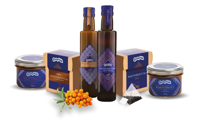 Vybírejte od 100% rakytníkového čaje, 100% rakytníkové šťávy, až po rakytníkový sirup či džem rakytník hruška, který si vaše děti rozhodně zamilují.
