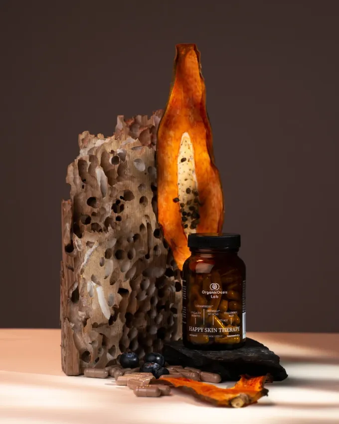 Unikátní přírodní směs šestnácti aktivních složek a dvou patentovaných látek pro zdravou, krásnou pleť i vlasy a nehty. Klíčovými složkami produktu jsou dvě patentované látky, konkrétně ceramidy CERAMOSIDES™ a koncentrovaná směs polyfenolů Oxxynea®. Happy Skin Therapy je vhodná pro lidi, kteří mají vrásky, dehydrovanou, poškozenou a citlivou pleť se sklonem k ekzémům a zvětšeným pórům. Má výrazný anti-age efekt, zároveň zlepšuje elasticitu pokožky, podporuje tvorbu kolagenu, redukuje oxidační stres a následně stárnutí buněk.