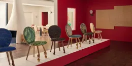 Butik, v němž se mísí klasicismus s orientalismem, se otvírá do dámské části plné pestrých a intimistních barev a poté přechází do pánského prostoru, kde se pojí fantazie s mužností. Najdete tam ikonické znaky domu: oblouky, výklenky, podlahu pokrytou červeným kobercem a směsici tkanin a nových materiálů, které jsou tak charakteristické pro kolekce této značky. Pod působivě vysokým stropem se nachází první salon, vyzdobený výklenky s motivy rubínových a zlatých lastur ručně tkaných firmou Le Manach. Sloupy jsoou zdobené keramikou představující bájnou faunu vytvořenou keramikem Jeanem Rogerem v pařížském ateliéru a skříňky s kuriozitami jsou obložené dlaždičkami azulejos z Portugalska, země, jejíž kultura je pro Christiana Louboutina zdrojem nekonečné inspirace.