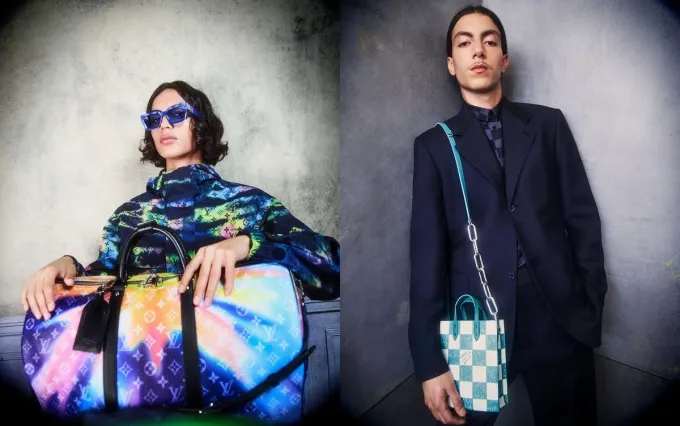 Vícebarevná batika – nová interpretace jednoho z dřívějších potisků Virgila Abloha a klíčový prvek pánských kolekcí Louis Vuitton – se objevuje v podobě designu Monogram Sunset na vzorovaných bundách a košilích s krátkým a dlouhým rukávem. V limitované kolekci, která se skvěle hodí na nadcházející podzim, nechybí kožené bundy s 3D potiskem, mikiny, cargo kalhoty či denimové bermudy. Modely podtrhuje výběr kožených doplňků, včetně populární tašky Keepall, nepostradatelné aktovky Sirius a kabely Trio Messenger. Všechny kousky mají nový šachovnicový vzor v tyrkysové či kouřově šedé barvě. Pokud jde o modely Keepall, Soft Trunk a kufr Horizon, ty jsou vyvedeny v pestrém plátně Monogram Sunset.