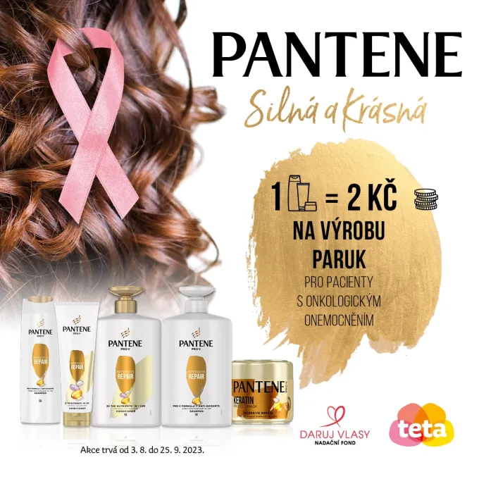 Šestý ročník projektu Pantene Silná a Krásná je u konce a milované produkty Pantene znovu pomáhaly onkologickým pacientkám k pocitu síly a krásy. Díky spotřebitelům, kteří zakoupili své oblíbené produkty Pantene v drogeriích Teta, se vybralo 129 146 Kč, které nyní poputují nadačnímu fondu Daruj vlasy na výrobu kvalitních paruk z pravých vlasů pro onkologické pacientky, které o ně zažádají. Protože každá žena si zaslouží cítit se silná a krásná.