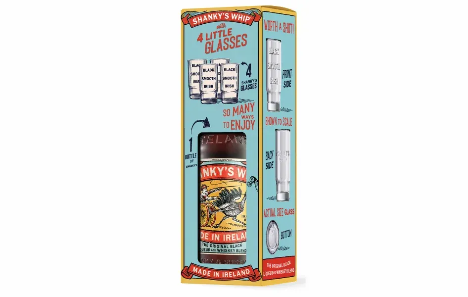 Pro milovníky sladkých a výrazných chutí je tu tento černý irský whiskey likér z hrabství Cavan. Shanky's Whip je unikátní blend pravé irské whiskey a destilátu ze syrovátky, ochucený vanilkou a karamelem. S obsahem alkoholu 33 % nabízí sametovou chuť, která potěší při společenských večerech. Dárkové balení obsahuje čtyři stylové skleničky, takže je připraveno k okamžitému sdílení radosti s přáteli. Ideální pro ty, kteří mají rádi sladší profily a společenské chvíle. Dárkové balení Shanky's Whip lze zakoupit na webu www.1er.cz za cenu 655 Kč.