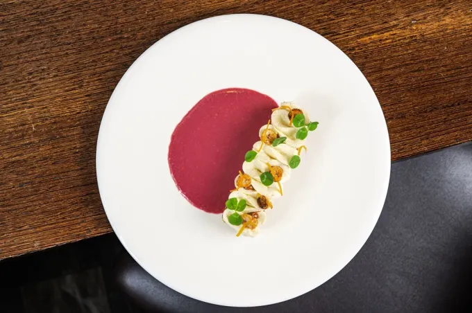 Dalším vrcholem večera byl hlavní chod v podobě Picanha, salsa tonnata e radici. Tento tradiční brazilský řez masa, známý svou šťavnatostí a plnou chutí, byl připraven s mistrovskou precizností. Každé sousto Picanhy se rozplývalo na jazyku, umocněno jemnou a krémovou tuňákovou omáčkou, která dodávala nečekaný, avšak dokonale harmonický kontrast k bohatosti masa. K tomu byly servírovány delikátně upravené kořeny, které jídlu dodávaly zemitou a lehce sladkou dimenzi, čímž se stalo komplexním a nezapomenutelným zážitkem pro všechny smysly.
