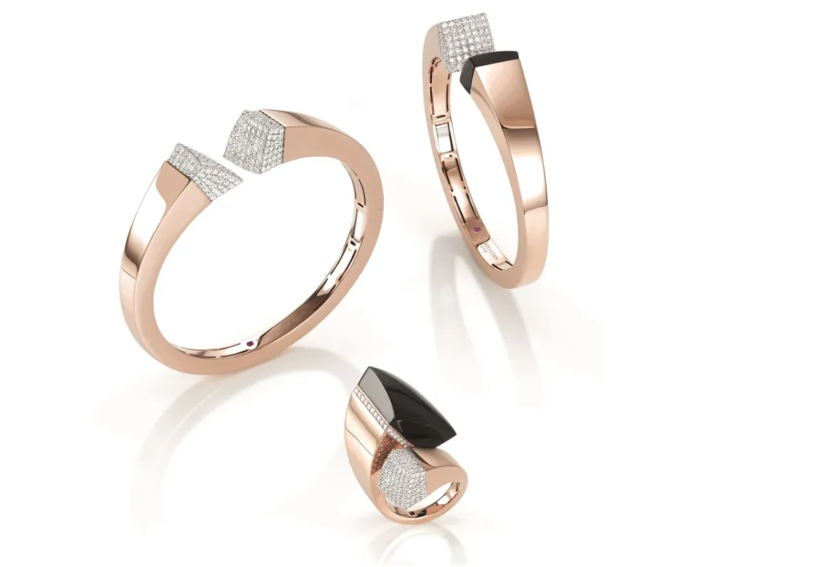 Když Roberto Coin vytvořil Sauvage Privé, rozhodl se opustit pravidla klasických jemných šperků. Jeho revoluční tvary a barvy zesilují hluboce instinktivní, nekonvenční podstatu, kterou oplývají všechny odvážné ženy. Jejich síla se promítá do nápadných geometrických náramků, prstenů a náušnic z bílého či růžového zlata zdobeného černým nefritem a bílými diamanty. Právě takový šperk o své majitelce jasně říká: „Tady jsem, odpoutaná od všednosti tohoto světa.”
