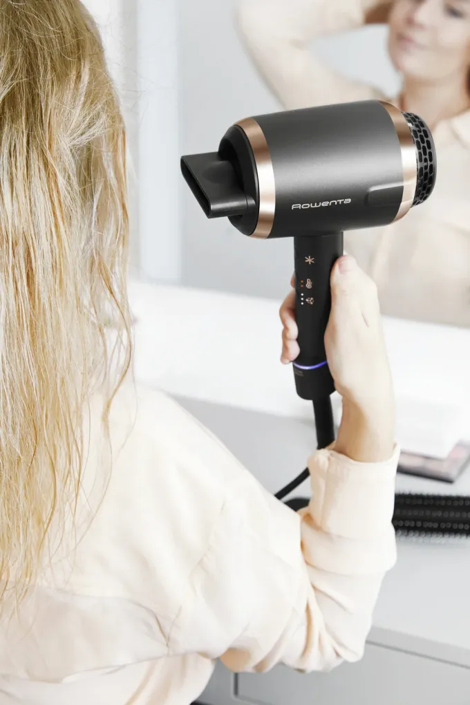 Ultramoderní vysoušeč Rowenta Ultimate Experience (CV9820) mění obyčejný vzduch v luxusní péči. Jedinečná technologie Air-to-Care vlasům dle potřeby dodává pozitivní nebo negativní ionty, které zabraňují lámání, ničení vlasů a zároveň je pomáhají chránit před znečištěním a prachem. Ionty vyrovnávají vlasovou strukturu, zajišťují jejich hladkost a lesk. Nadstandardní péči při vysoušení obstarává integrovaný koncentrátor a digitální bezkartáčový motor, který zajišťuje až dvakrát delší životnost vysoušeče. S vylepšenou ergonomií a pokročilou technologií Smart Memory, která uchovává přesná nastavení od posledního použití, jde o revoluční zjednodušení stylingu v pohodlí vlastní koupelny! Navíc s funkcí permanentního studeného vzduchu, kterou najdete v nabídce teplot, si účes perfektně zafixujete, aby vydržel dokonalý po celý den.