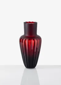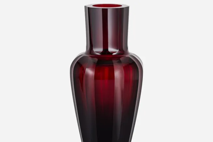 Sklo všech tří je obarvené oxidem zlata, jež mu dodá temně rudý odstín. Každý z unikátů pak mistr brusič Jiří Štencl zhotovil v jedinečném designu podle Jungvirtova návrhu. První z váz je střídavě hranovaná a vyleštěná do vysokého lesku. Zbývající dvě kombinují brus s matným sklem a hrdlo mají zakončené vlnitou „korunkou“. Ruční broušení s podélnými řezy odkazuje k tradici, zatímco pecičkové řezy působí velmi moderně a rozpustile.