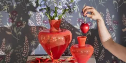 Trojice váz Pomegranate nezapře inspiraci v granátovém jablku. „Nejde pouze o doruda zbarvenou sklovinu, ale také původ samotného slova. Granatus dalo na základě podobnosti s granátovým jablkem vzniknout slovu hranatý. A v neposlední řadě vychází dekor váz ze servírování granátového jablka rozděleného na segmenty s viditelnými jadérky,“ vysvětluje František Jungvirt.