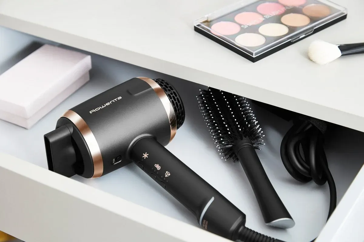 Ultramoderní vysoušeč Rowenta Ultimate Experience (CV9820) poskytuje nadstandardní péči s jedinečnou technologií Air-to-Care. Při foukání totiž mění vzduch v péči – vlasům podle potřeby dodává pozitivní nebo negativní ionty, které zabraňují lámání a ničení vlasů. Vlasy jsou pak hladké a lesklé. Navíc disponuje digitálním bezkartáčovým motorem, který zajišťuje až dvakrát delší životnost vysoušeče! Integrovaný koncentrátor, vylepšená ergonomie a Smart Memory, která uchovává přesná nastavení od posledního použití, zajištují maximální komfort při vysoušení a hairstylingu. S funkcí permanentního studeného vzduchu, kterou najdete v nabídce teplot, si účes perfektně zafixujete, aby vydržel dokonalý po celý den.