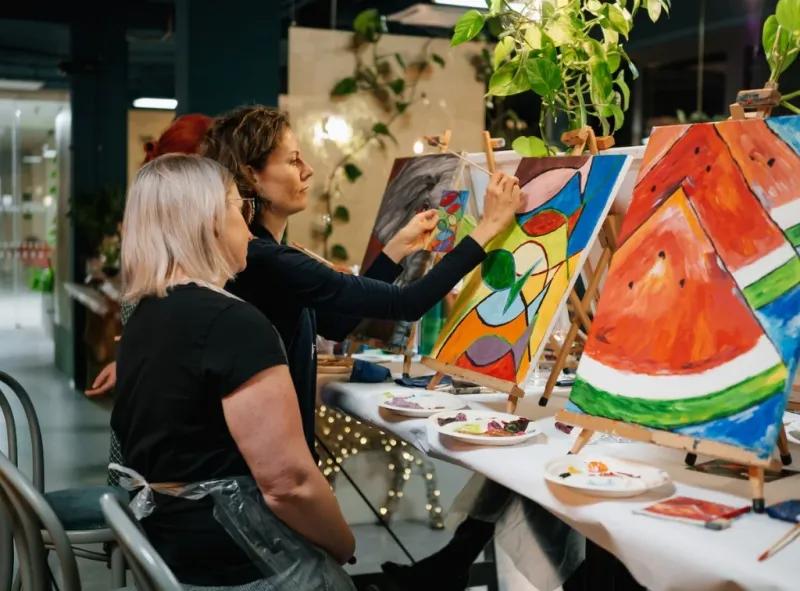 Vybrat si můžete z různých formátů podle nálady. Klasické večery ArtMoment jsou o malování akrylem podle tematických předloh, od romantických krajin přes městské motivy až po minimalistické abstrakce. ArtNeon zve do magického světa luminiscenčních barev, které pod UV světlem září a mění celý zážitek v noční show. ArtWine spojuje řízenou degustaci se someliérem a malování vínem, které na papíře vytváří překvapivě jemné tóny. ArtInk pracuje s lihovou tuší a třpytivými pigmenty, které jsou ideální pro milovníky abstrakce. Novinkou jsou keramické a texturové formáty, kde vznikají plastické obrazy a autorské kousky do interiéru.