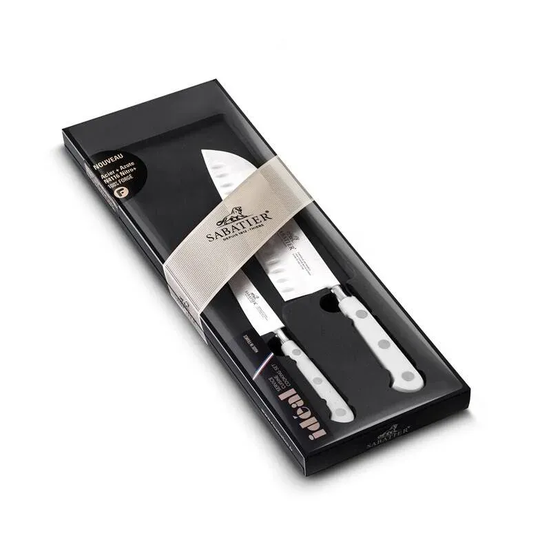 Sada kuchyňských nožů Lion Sabatier z prestižní řady Idéal Toque představuje spojení staleté francouzské tradice a moderního designu. Tato dvoučlenná sada obsahuje univerzální kuchařský nůž a praktický loupací nůž, což jsou dva nejdůležitější nástroje, které tvoří základ každé kvalitní kuchyně. Nože jsou vyráběny přímo v historickém centru francouzského nožířství, v Thiers, pod přísným dohledem značky Lion Sabatier, která je celosvětově uznávaná pro svou preciznost a kvalitu zpracování.