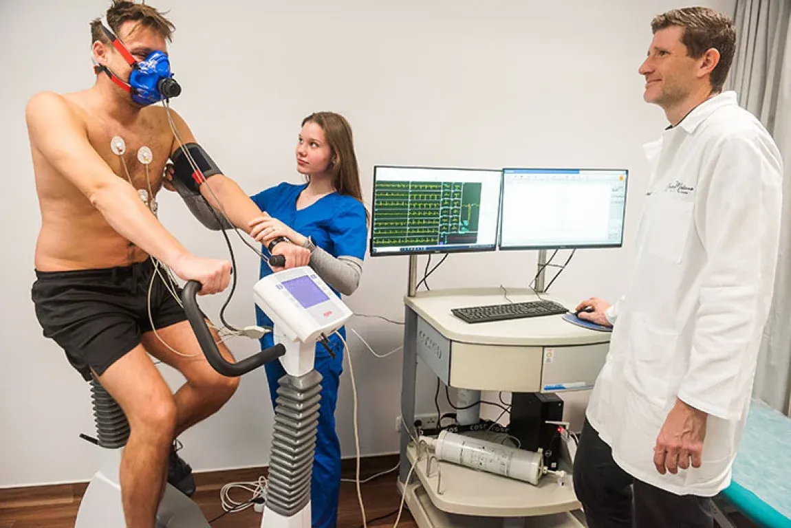 Pro důkladné posouzení zdravotního stavu se využívají moderní zobrazovací metody. Radiolog provede ultrazvukové vyšetření vnitřních orgánů, které umožní nahlédnout do vašeho těla a odhalit potenciální problémy. Kardiolog provede vaskulární ultrazvukovou diagnostiku a rozsáhlou kardiologickou prohlídku, která zahrnuje EKG, echokardiografii a další testy k posouzení zdraví vašeho srdce.