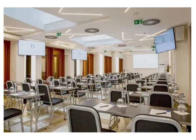 5 konferenčních sálů, včetně 2 prostorných sálů s kapacitou 70 a 44 osob na školní sezení s pohodlnými business křesly a denním světlem.