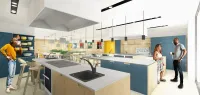 „Pokrokovost objektu se týká nejen technologické, ale rovněž designové stránky. Výraznými prvky v exteriéru budou například „zelená“ střecha s dřevěnou terasou zastíněná okrasnou plachtou, atypický lichoběžníkový střešní světlík nebo designový perforovaný plech, který zakryje technologické části střechy. V interiéru zaujmou posuvné stěny zakrývající kuchyňské linky nebo schodiště se zábradlím z ocelové nerezové sítě,“ říká František Forejt, vedoucí realizačního střediska společnosti HSF System, která je generálním dodavatelem stavby.