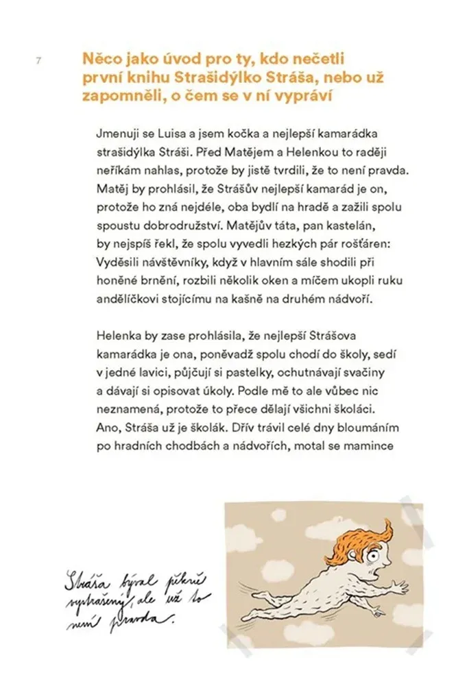 Druhé dobrodružství oblíbeného strašidýlka z pera Aleny Mornštajnové s názvem Strašidýlko Stráša se vrací a tentokrát ho čeká opravdu těžký úkol. Stráša ví, že je strašidlo, ale neví, jaký druh strašidla z něj v dospělosti bude. Celou knihu tedy hledá své místo ve strašidelném i lidském světě. Musí vypátrat, co je vlastně zač. Je hejkal? Trpaslík? Rohy nemá, takže čert asi nebude... Nebo mu teprve vyrostou? Nejlepší bude, aby Stráša ochutnal od každého ze strašidelnických povolání trochu, a pak se uvidí. A tak se strašidýlko vydává na dobrodružné návštěvy k příbuzným – k dědečkovi vodníkovi, ke strýci hejkalovi i s tetou vílou do lesa. Mezitím začne chodit Stráša do školy, ale narazí na to, na co naráží všechny děti, které se něčím odlišují - nezapadá tak docela do dětského kolektivu a dostává se do hledáčku dvou nepříjemných spolužáků, kteří se mu posmívají a ubližují mu jenom proto, že není jako ostatní děti. To je potíž, se kterou se potkává hodně dětí a je dobré vědět, že takové problémy mají i jiní a že je dobré nenechat si všechno líbit a potíže řešit. A že děti, které možná nevynikají v jedné věci, můžou být skvělí v něčem jiném, i když to není nadpřirozená schopnost, jakou v sobě nakonec objeví Stráša. Všechny potíže se lépe překonávají, když má člověk kamarády. „Po napsání první knihy jsem si přála, aby knihu ilustrovala Galina Miklínová. Přání se mi splnilo a v Galině jsem našla nejen skvělou ilustrátorku, ale i kamarádku. Její ilustrace jsou krásné a humorné, mají nápad a osobitost a krásně doplňují text,“ říká k ilustracím Mornštajnová. Knihu, vhodnou pro všechny děti od 6 let vydává nakladatelství Albatros za 299 Kč.