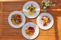 Chuťově poctivá a řemeslně precizní kuchyně šéfkuchaře Hynka Vávry je založená na dvou pilířích. Tím prvním jsou ryby a mořské plody, které potěší hlavně v létě. Z předkrmů můžeme doporučit osvěžující chobotnicový salát s bohatou chutí oliv, sušených rajčat a jemného masa hlavonožce, ale především skvostné mušle svatého Jakuba, které jsou zlehka opečené a servírované s křehkou rukolou a delikátní omáčkou z pečených paprik.